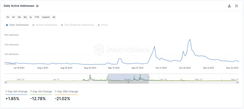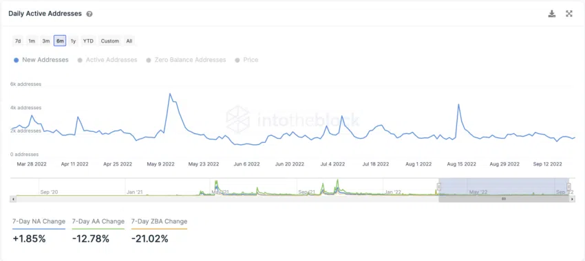 ด้วยอุปทานของ SHIB ที่ลดลงนั้นน่าจะส่งผลดีต่อโทเค็นหากอุปสงค์เพิ่มขึ้น ตัวบ่งชี้เครือข่ายแสดงให้เห็นที่ Address ใหม่ที่เพิ่มขึ้นอย่างต่อเนื่องรายวัน โดยเพิ่มขึ้น 1.85% ในช่วงสัปดาห์ที่ผ่านมา โดยเฉลี่ยแล้วจะมีการสร้าง Address ประมาณ 1,600 ครั้งต่อวันในเดือนกันยายน