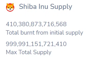 จนถึงวันที่ 22 กันยายน กว่า 410 ล้านล้าน SHIB ได้ถูกเผาไปทั้งหมดจากอุปทานเริ่มต้นซึ่งคิดเป็นกว่า 41% ของอุปทานโดยรวมสูงสุดจนถึงปัจจุบัน
