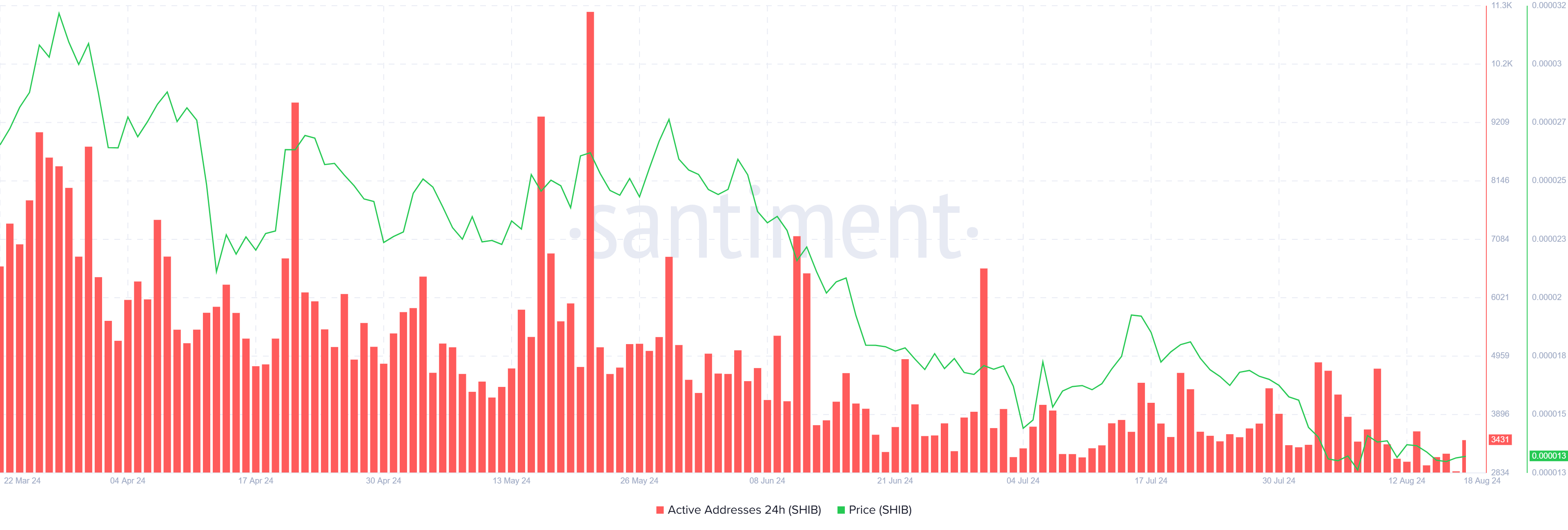 การมีส่วนร่วมของนักลงทุนใน Shiba Inu ลดลงอย่างมาก ความเชื่อมั่นที่เป็นขาลงที่ยืดเยื้อทําให้นักลงทุนทั้งใหม่และนักลงทุนปัจจุบันมีส่วนร่วมกับสกุลเงินดิจิทัลน้อยลง การถอนนี้สะท้อนให้เห็นในปริมาณการซื้อขายที่ลดลงและกิจกรรมทางการตลาดที่ลดลงรอบ ๆ Shiba Inu