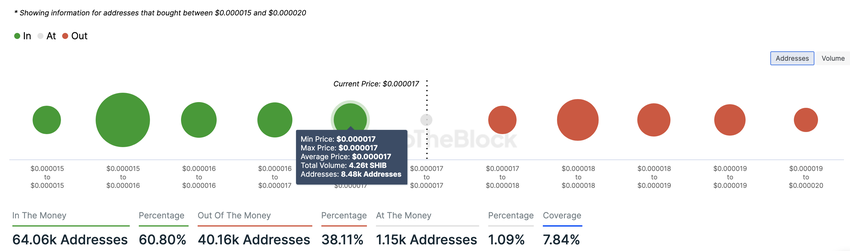 จากมุมมองของ on-chain การวิเคราะห์ In/Out of Money Around Price (IOMAP) แสดงให้เห็นว่าเมื่อสถานการณ์คลี่คลาย SHIB อาจกลับมามีแนวโน้มเชิงบวกอีกครั้ง