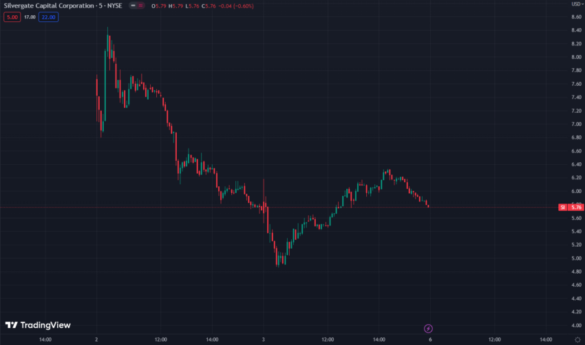 ราคาหุ้นของ Silvergate ลดลงสู่ระดับต่ำเป็นประวัติการณ์ โดยต่ำกว่า 6 ดอลลาร์สหรัฐ หลังจากตลาดปิดทําการเมื่อวันที่ 2 มีนาคม 2023 ทำให้ราคาลดลงอีก 2% ในการซื้อขายล่วงหน้าในเช้าวันรุ่งขึ้น ปัจจุบัน ราคาหุ้นอยู่ที่ 5.76 ดอลลาร์สหรัฐ ลดลงเกือบ 67% เมื่อเทียบอัตราราคาเป็นรายปี