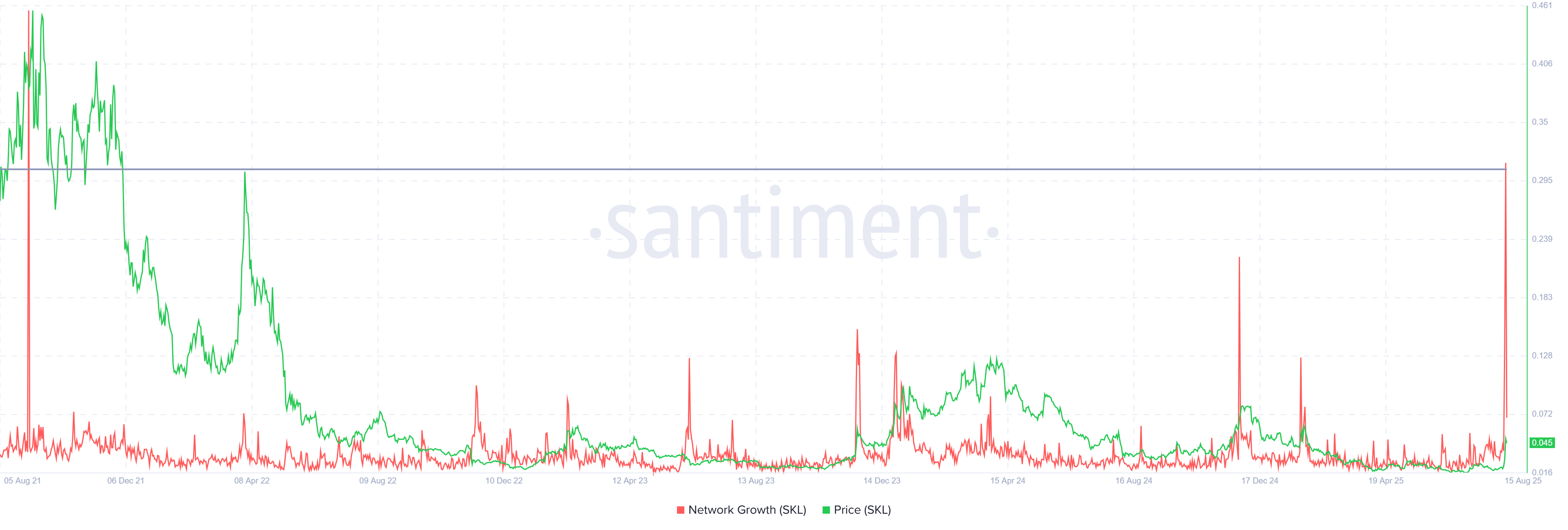 อย่างไรก็ตาม หากแรงขายเพิ่มขึ้นและนักลงทุนตัดสินใจขายสินทรัพย์ของตน SKL อาจลดลงต่ำกว่าระดับสนับสนุนที่ USD0.038 การลดลงต่อไปอาจดันราคาไปที่ USD0.029 ซึ่งจะทำให้มุมมองเชิงบวกสำหรับ altcoin ไม่เป็นผลและลบล้างกำไรล่าสุด