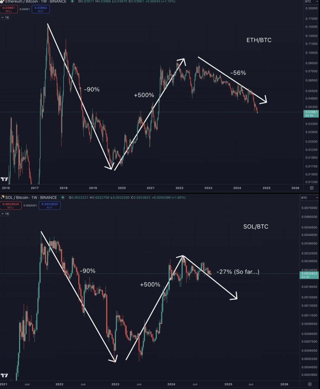 SOL maxis ยุ่งอยู่กับการหัวเราะเยาะ ETH จนไม่รู้ตัวว่า SOL/BTC กำลังตามรอย ETH/BTC Cowen กล่าว