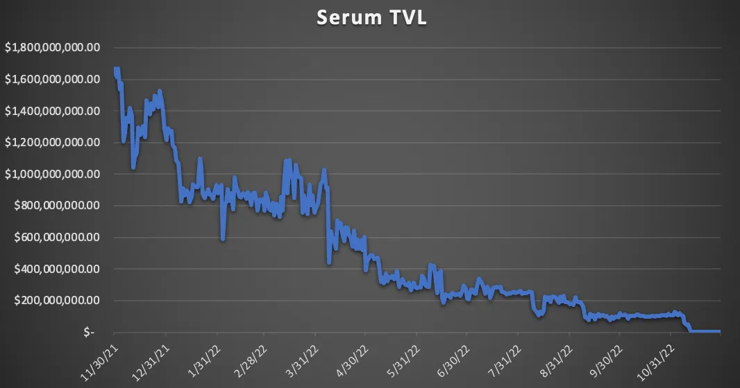 จนถึงปัจจุบัน สถานการณ์นี้ส่วนใหญ่หลีกเลี่ยงไม่ได้แม้ว่า TVL ใน Serum จะลดลง 99.6% จาก $121.7M ก่อนเกิดวิกฤตเหลือเพียง $434K โดยที่ Raydium หยุดการทำตลาดชั่วคราวบน DEX และ Zeta Options ที่หยุดการฝากเงิน