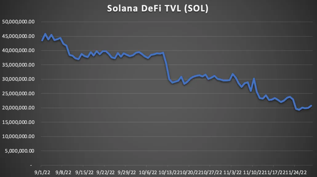 DeFi TVL ของเครือข่ายในสกุลเงินดอลลาร์สหรัฐฯ ลดลง 72.1% จาก 1.0 พันล้านดอลลาร์ในวันที่ 6 พฤศจิกายน เป็น 278.3 ล้านดอลลาร์ สิ่งนี้เป็นสิ่งที่คาดหวัง เนื่องจากสินทรัพย์จำนวนมากที่ฝากไว้ในโปรโตคอล DeFi เช่น SOL, ETH และ BTC นั้นมีความผันผวน ด้วยเหตุนี้ การลดลงของ TVL จึงไม่ได้หมายความว่าผู้ใช้ถอนเงินออกจาก SolFi