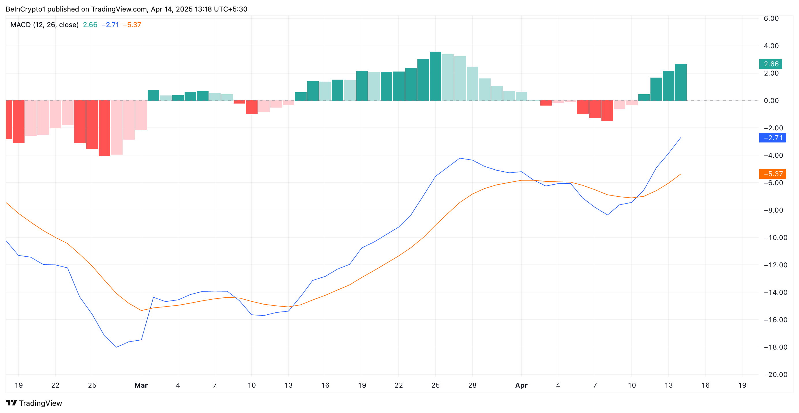 ในด้านเทคนิค การตั้งค่าของ Moving Average Convergence Divergence (MACD) ของ coin ยืนยันถึง แนวโน้มเชิงบวกนี้ ในขณะที่เขียน SOL’s MACD line (สีน้ำเงิน) อยู่เหนือ signal line (สีส้ม)