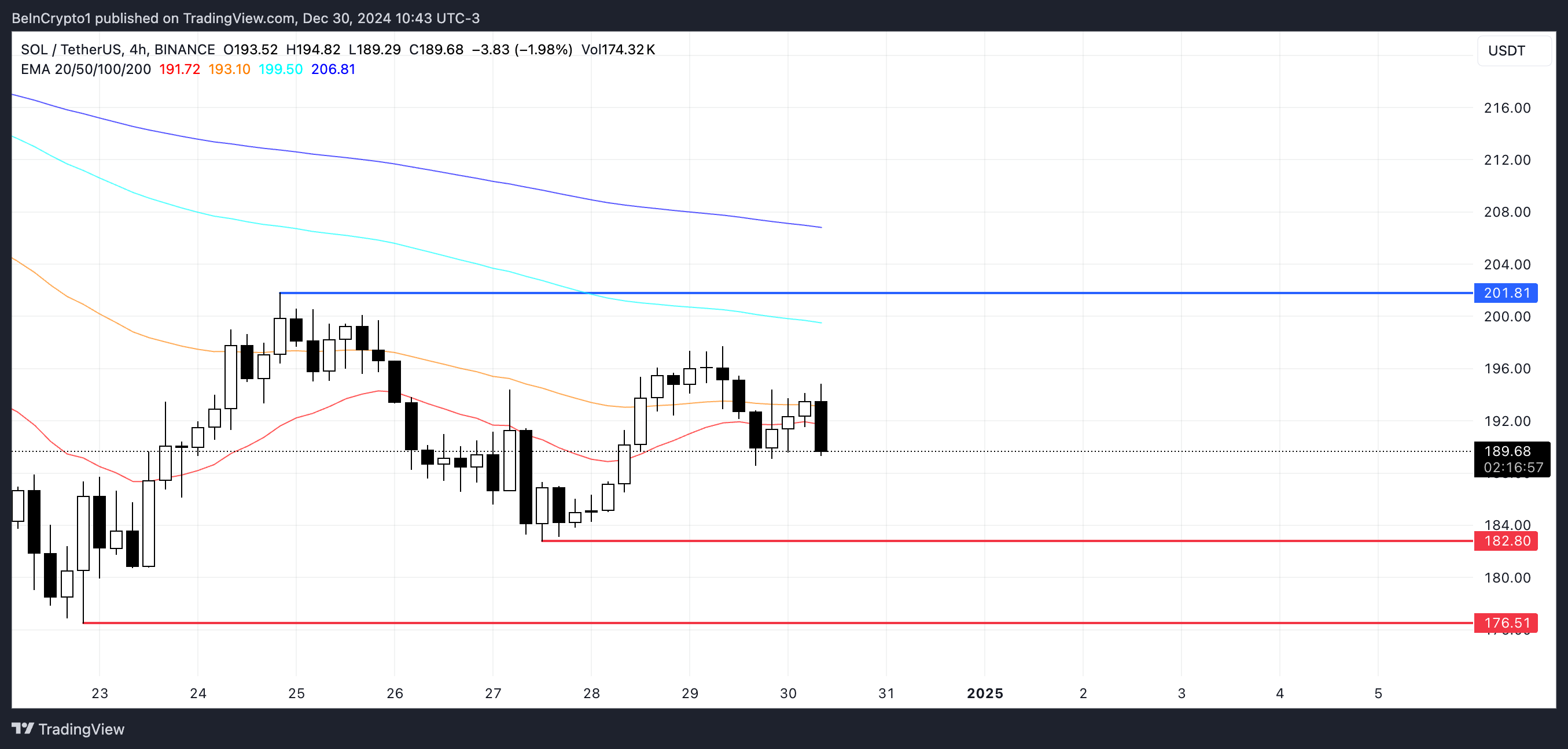 ในทางกลับกัน หากราคาของ SOL สามารถกลับแนวโน้มปัจจุบันและสร้างแนวโน้มขาขึ้นได้ อาจทดสอบแนวต้านที่ 201 ดอลลาร์ การทะลุผ่านระดับนี้จะบ่งบอกถึงแรงผลักดันขาขึ้นที่เพิ่มขึ้น และอาจเปิดทางให้การเคลื่อนไหวขึ้นต่อไป