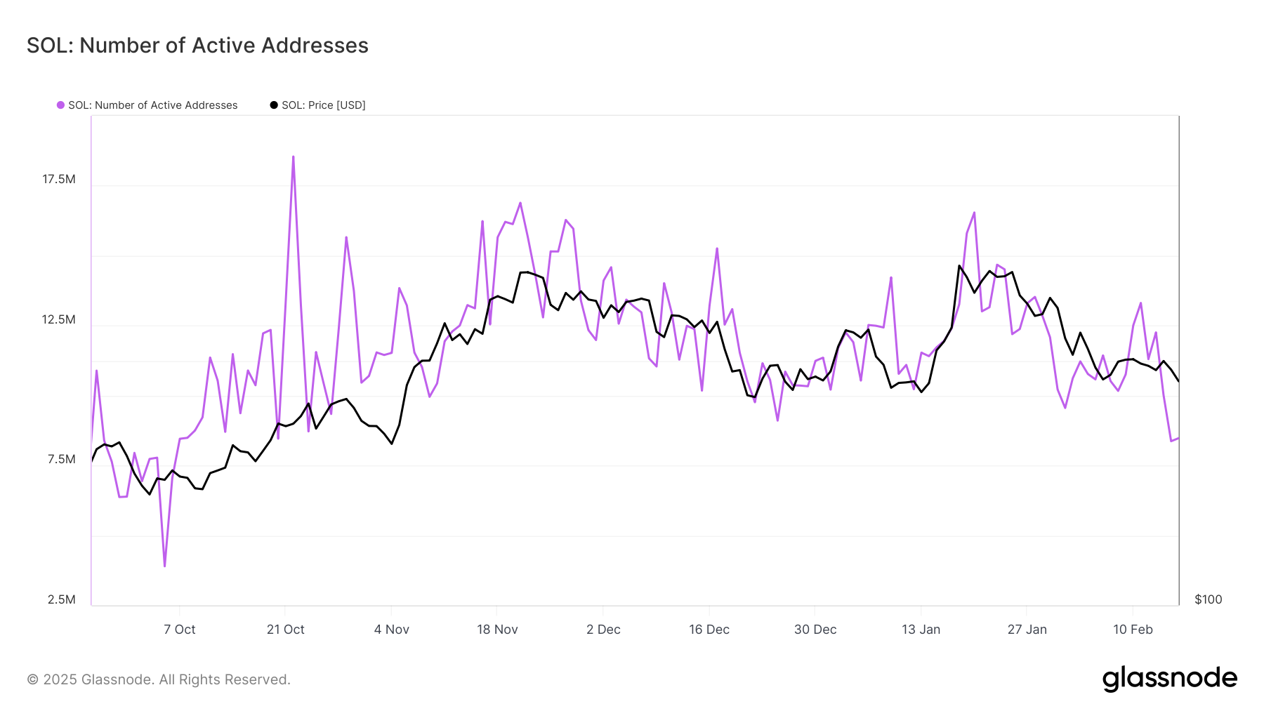 กิจกรรมเครือข่ายของ Solana ชะลอตัวลงอย่างมาก โดยที่อยู่ที่ใช้งานลดลงสู่ระดับต่ำสุดในรอบห้าเดือน การลดลงของกิจกรรมการทำธุรกรรมนี้สะท้อนถึงความเชื่อมั่นของนักลงทุนที่ลดลง เนื่องจากผู้ถือดูเหมือนจะถอยห่างจากการมีส่วนร่วมกับเครือข่าย