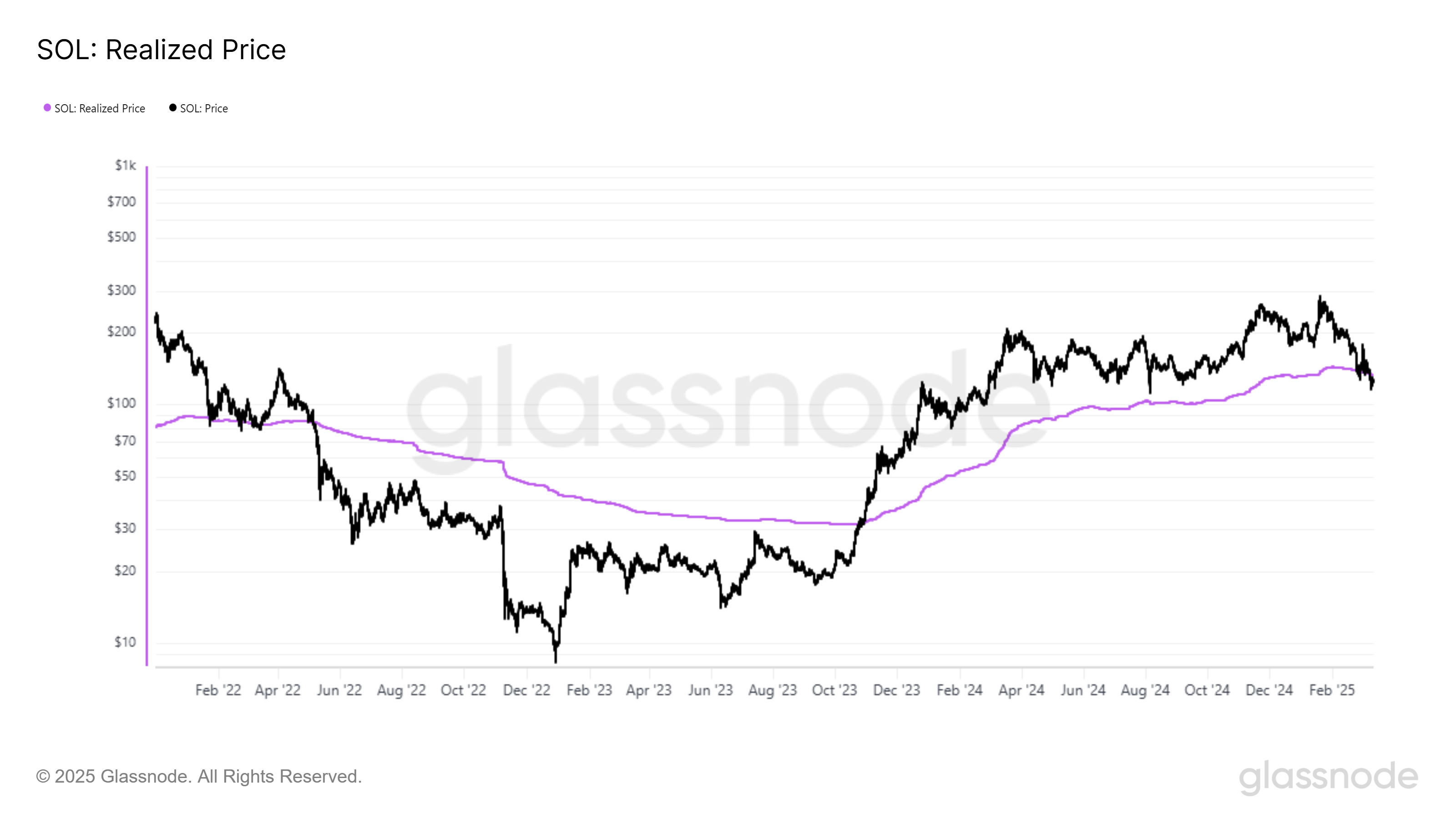 ราคาของ Solana ได้ลดลงต่ำกว่าราคาที่รับรู้เป็นครั้งแรกในเกือบ 3 ปี ราคาที่รับรู้เป็นตัวชี้วัดสำคัญที่แสดงถึงราคาที่เฉลี่ยที่สินทรัพย์ถูกเคลื่อนย้ายครั้งสุดท้าย เมื่อราคาสปอตลดลงต่ำกว่านี้ มันบ่งชี้ว่าผู้ถือ Solana กำลังประสบกับการขาดทุนที่ยังไม่เกิดขึ้นจริง