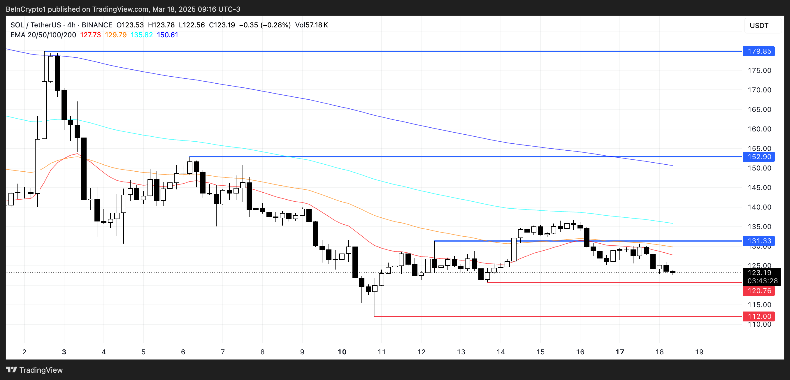 การรวมตัวในปัจจุบันระหว่าง USD120.76 และ USD131 จะมีความสำคัญในการกำหนดว่า SOL จะยังคงมีแรงกดดันขาลงต่อไปหรือเปลี่ยนเป็นแนวโน้มขาขึ้นที่ยั่งยืนหรือไม่