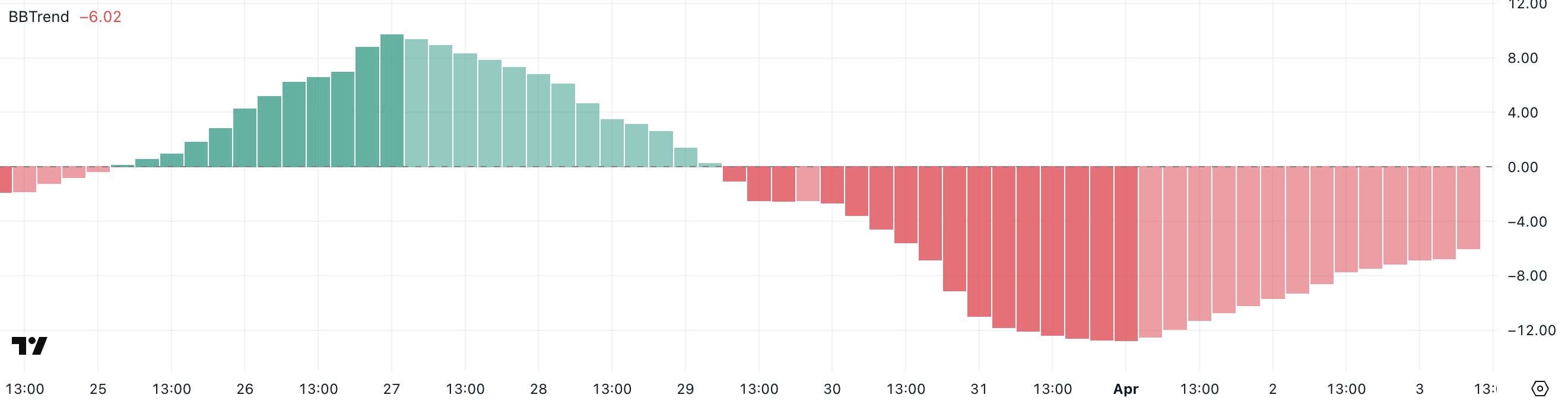 Sponsored SponsoredBBTrend (Bollinger Band Trend) วัดความแข็งแกร่งและทิศทางของแนวโน้มโดยใช้ Bollinger Bands ค่าบวกบ่งบอกถึงสภาวะขาขึ้นและแรงกดดันขาขึ้น ในขณะที่ค่าลบบ่งบอกถึงแนวโน้มขาลง