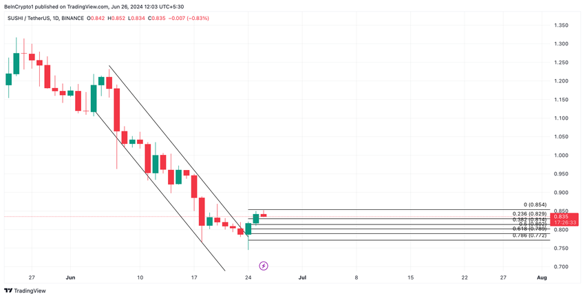 ในขณะที่เขียนนี้ SUSHI ซื้อขายที่ 0.83 ดอลลาร์ แม้ว่า altcoin จะเห็นกิจกรรมการซื้อที่เพิ่มขึ้นในช่วงสองวันที่ผ่านมา แต่อคติขาลงที่มีต่อมันยังคงมีนัยสําคัญ