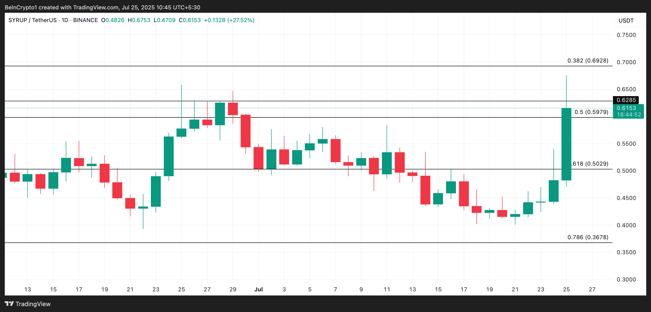 สิ่งนี้เป็นจริงสำหรับ SYRUP ซึ่งได้ ทำจุดสูงสุดใหม่ในท้องถิ่น ซึ่งเสริมความมั่นใจของนักเทรดว่าการขึ้นราคายังมีโอกาสดำเนินต่อไป