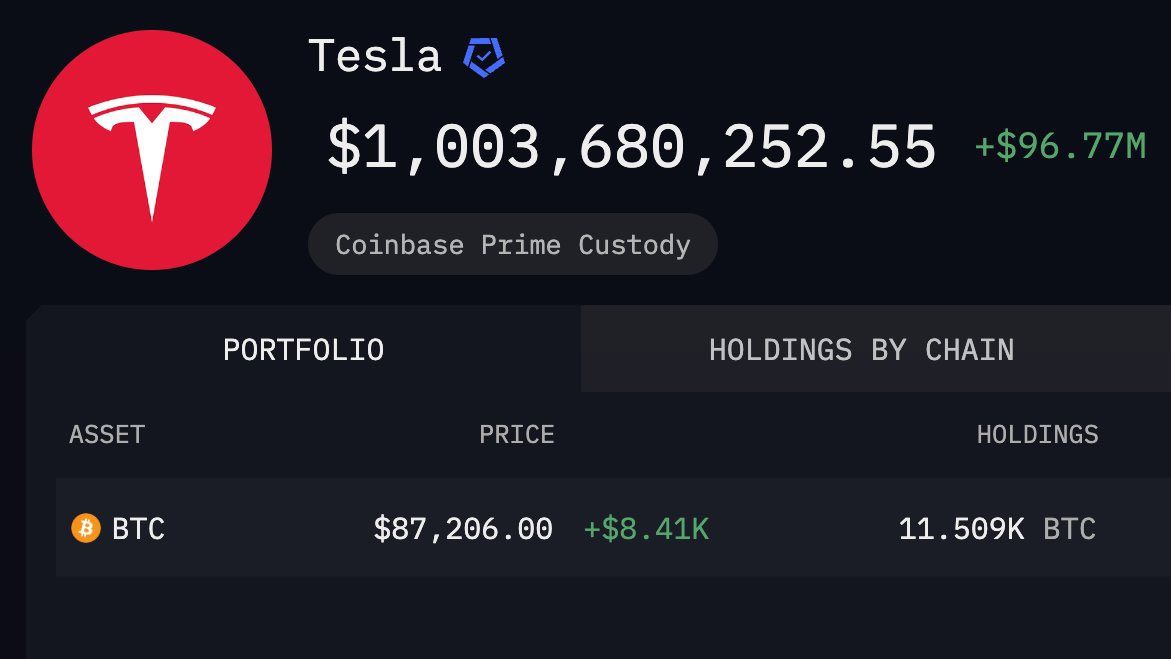 Tesla บริษัทยักษ์ใหญ่ด้านยานยนต์ไฟฟ้า ปัจจุบันถือ Bitcoin มูลค่าเกิน 1 พันล้าน USD ซึ่งได้รับแรงหนุนจากตลาดกระทิงในปัจจุบัน ในเดือนกุมภาพันธ์ 2021 Tesla เริ่มลงทุนใน Bitcoin โดยสร้างข่าวใหญ่ด้วยการซื้อที่ใหญ่ที่สุดของสถาบันในพื้นที่สกุลเงินดิจิทัล