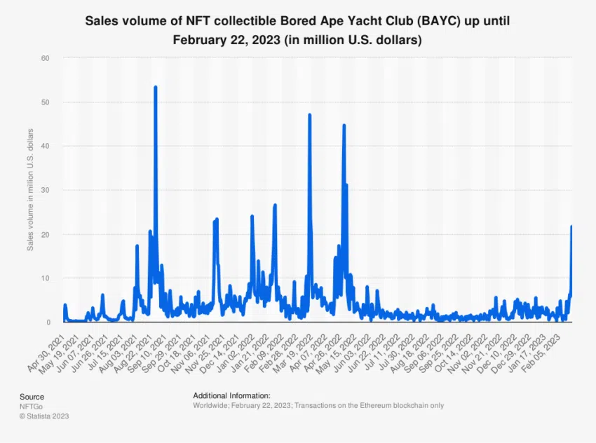 อีกหนึ่งกรณีศึกษาที่โดดเด่นในตลาด NFT ก็คือ Bored Ape Yacht Club ซึ่งเป็นคอลเล็กชั่นของ NFT ที่มีความแตกต่างกันมากกว่า 10,000 รายการที่ก่อให้เกิดเป็นกระแสทางวัฒนธรรมขึ้นมา ชัยชนะของพวกเขานั้นเป็นผลมาจากคอมมูนิตี้ที่มีชีวิตชีวา รวมไปถึง ความสามารถในการสานต่อเรื่องราวที่น่าหลงใหลลงไปในผลงานศิลปะ