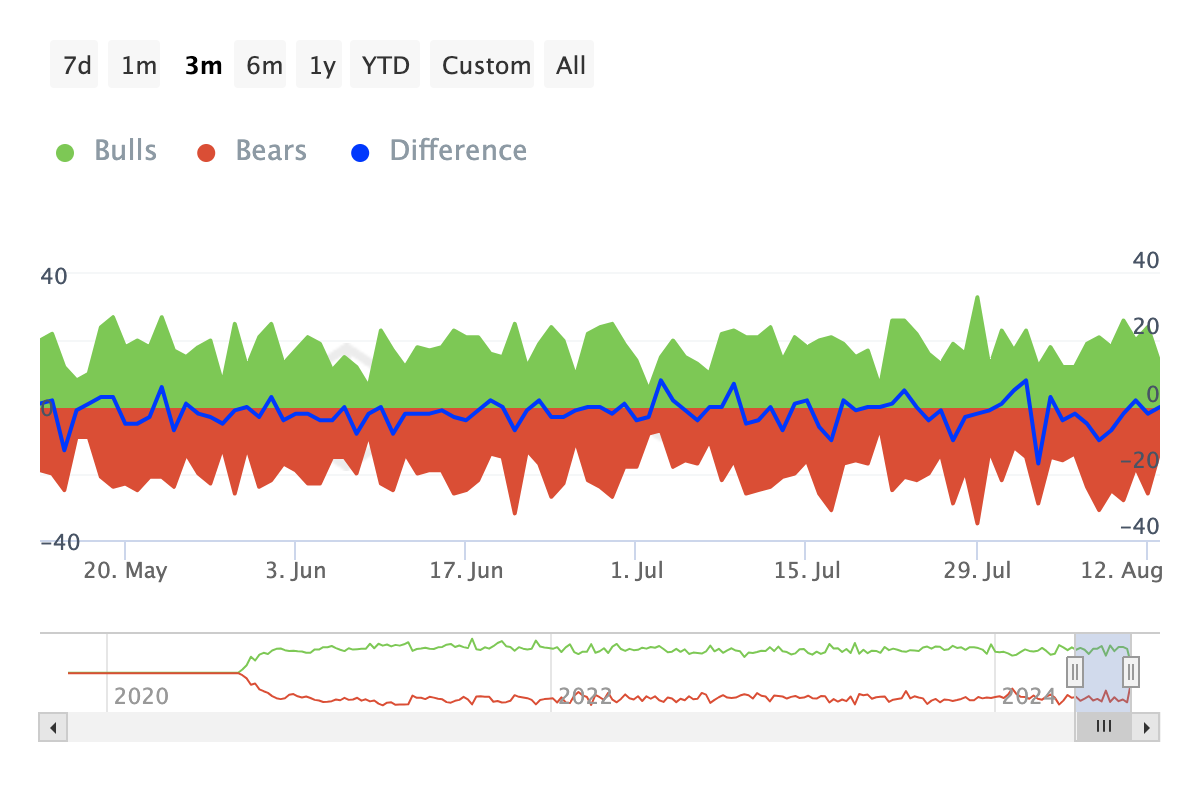 ในช่วงเจ็ดวันที่ผ่านมา SAND ได้เห็นตลาดหมีมากกว่าตลาดกระทิง 28 ตัว ซึ่งบ่งชี้ว่าผู้ค้าส่วนใหญ่ขาดความมั่นใจในโอกาสของToken