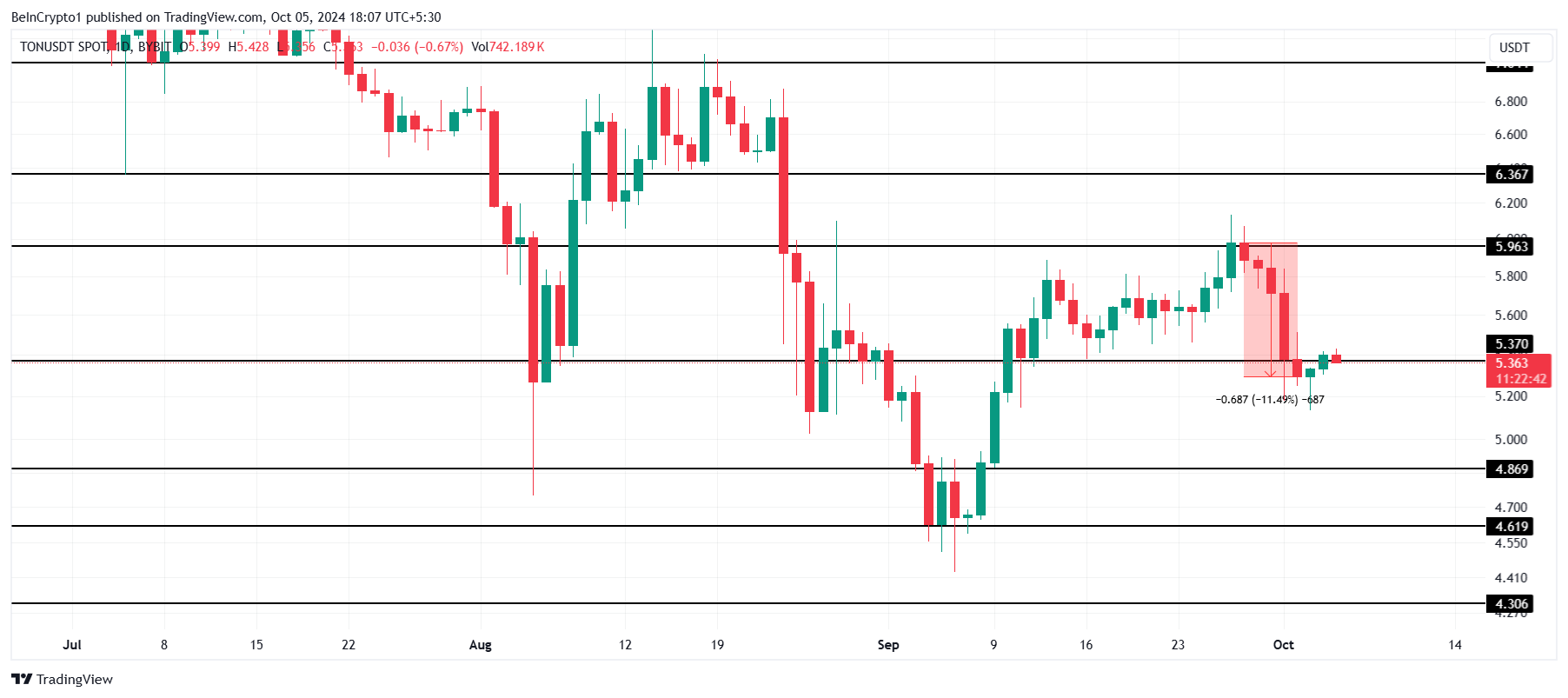 สกุลเงินดิจิทัลที่เชื่อมโยงกับ Telegram นี้กำลังซื้อขายที่ราคา 5.36 ดอลลาร์และกำลังพยายามกู้คืนระดับการสนับสนุนที่สำคัญ