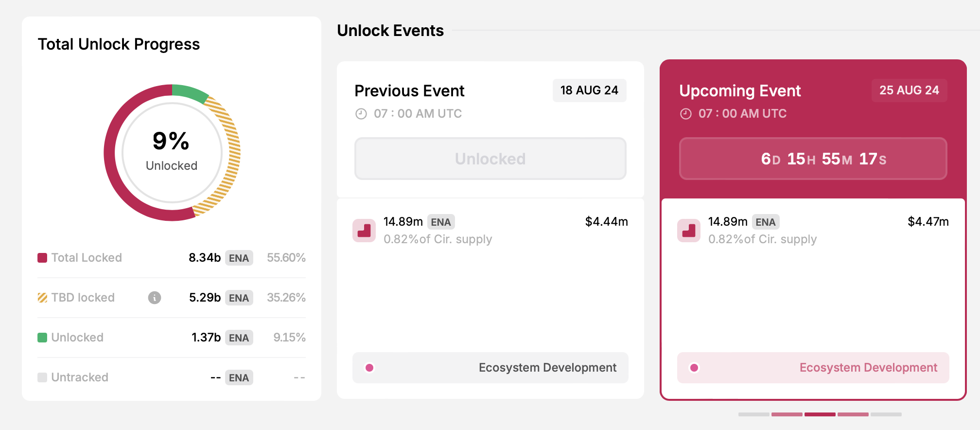- จํานวน Token ที่ปลดล็อค 14.89 ล้าน ENA