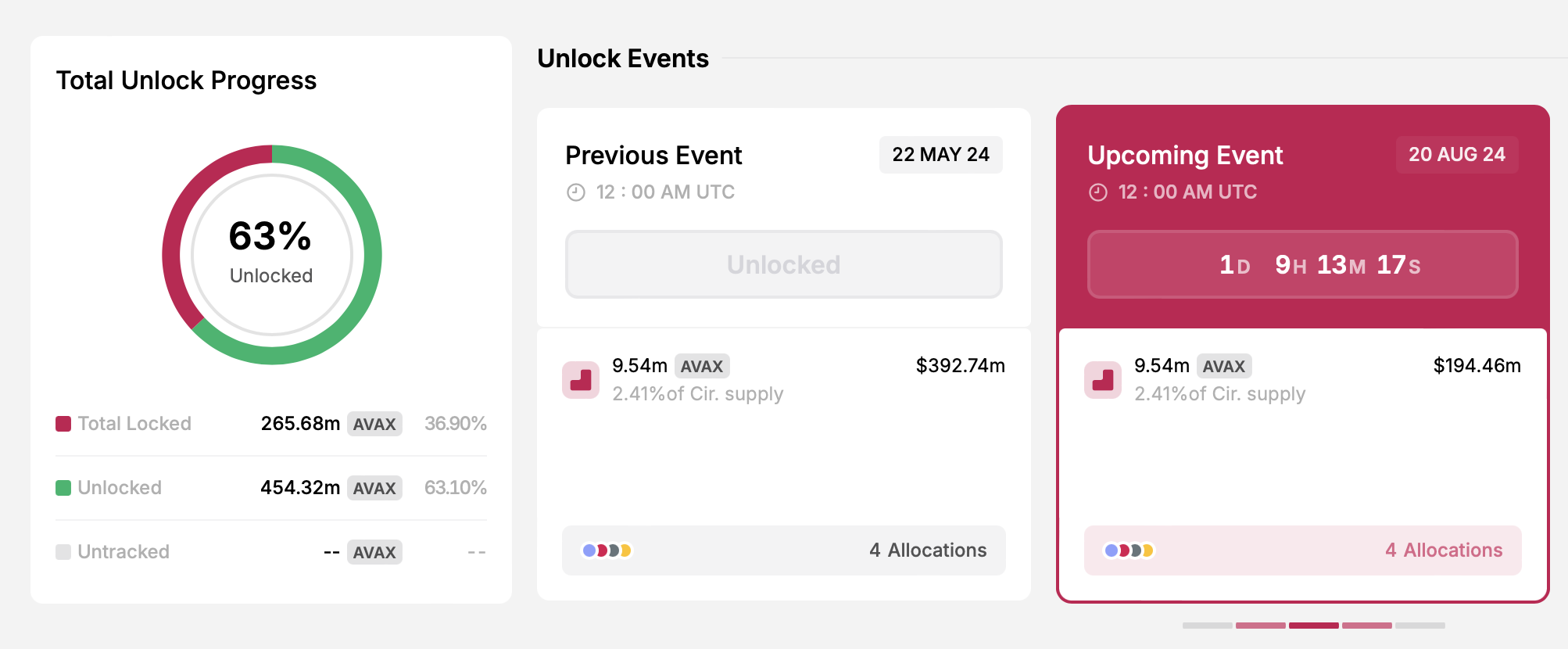 - จํานวน Token ที่ปลดล็อค 9.54 ล้าน AVAX