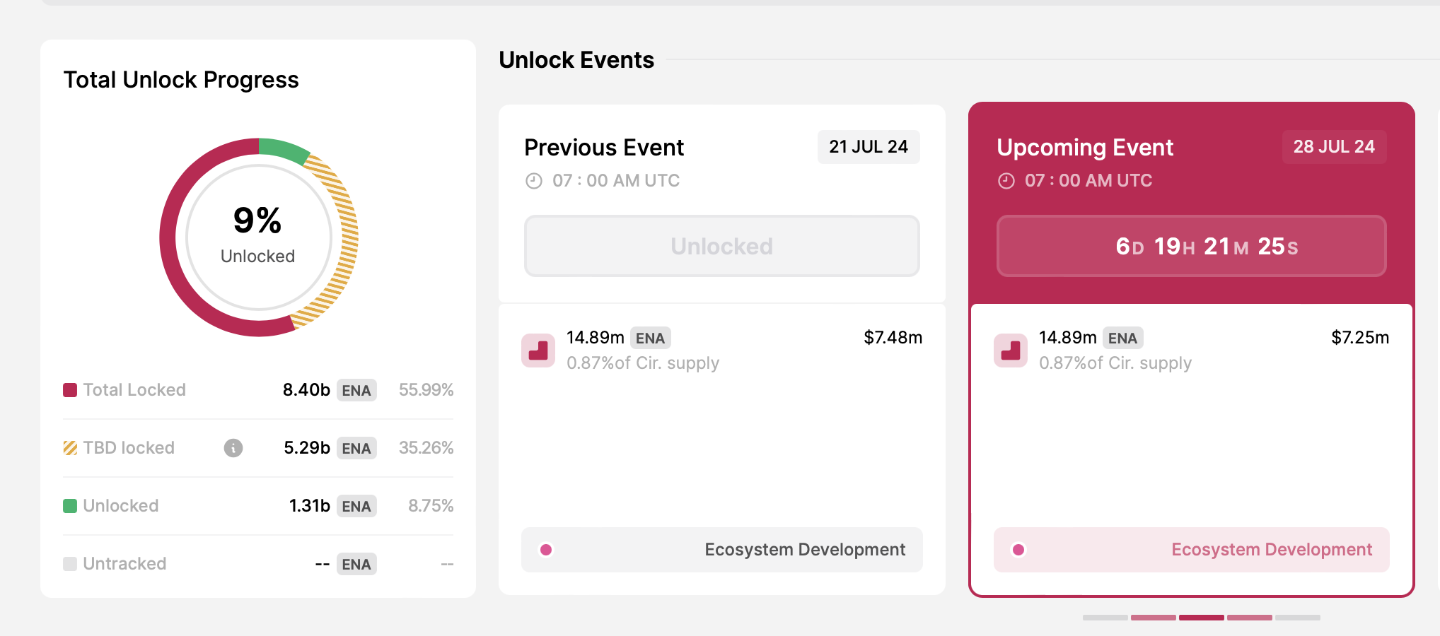 - จํานวนโทเค็นที่ปลดล็อก: 14.89 ล้าน ENA