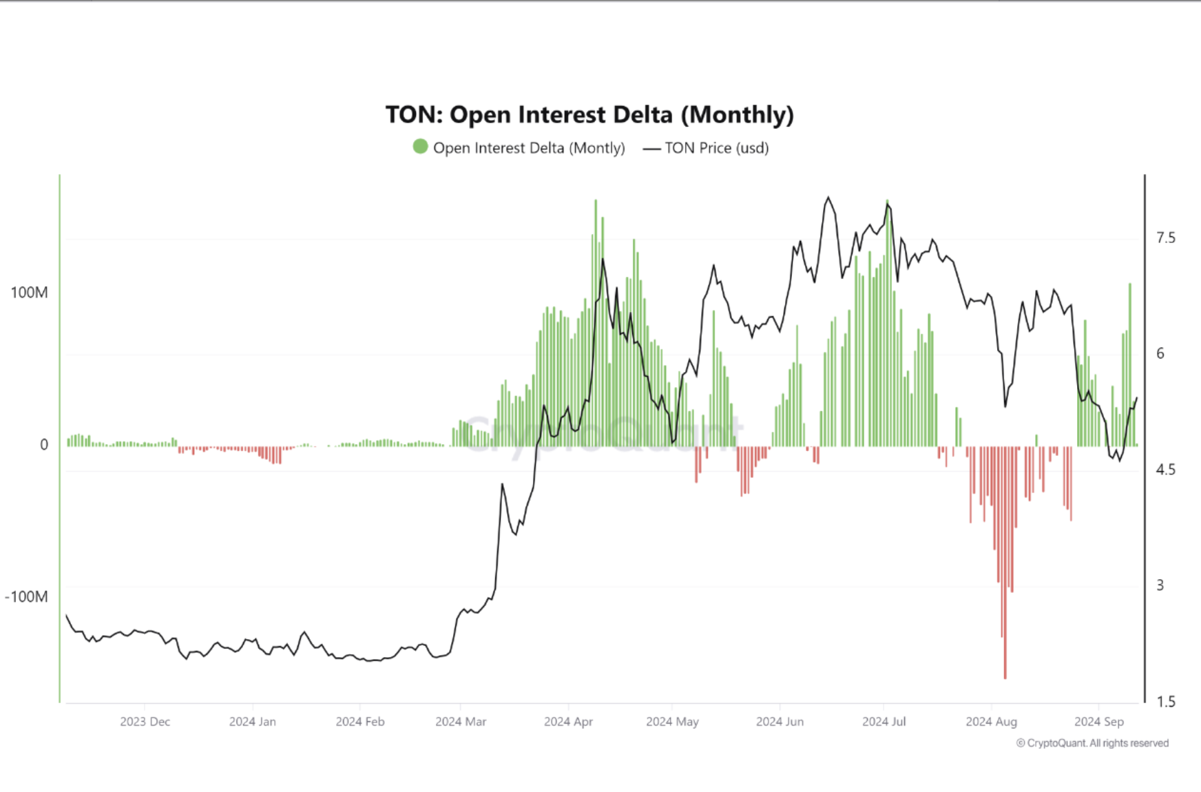 การกดราคาสั้นเกิดขึ้นเมื่อราคาของสินทรัพย์พุ่งสูงขึ้นอย่างรวดเร็ว ทำให้ผู้ค้าที่เดิมพันต่อต้านสกุลเงินดิจิทัลโดยการทำสถานะขายสั้นต้องซื้อคืนในราคาที่สูงขึ้น ซึ่งจะผลักดันให้ราคาเพิ่มขึ้นและเพิ่มความผันผวนในตลาด ในรายงานใหม่จาก CryptoQuant ผู้เขียน Joao Wedson ได้ชี้ว่าการอ่านร่วมของดัชนีความสนใจเปิด 30 วันของ Toncoin และอัตราเงินทุนที่ติดลบบ่งชี้ว่าเหรียญนี้อาจกำลังจะเข้าสู่สถานการณ์นั้น