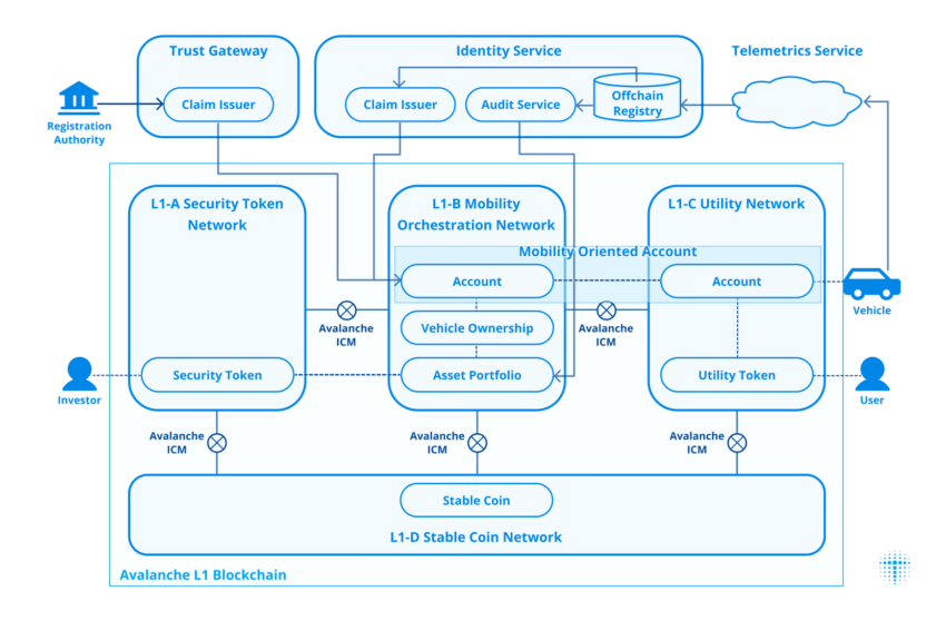 สถาปัตยกรรมของ Avalanche เป็นแกนหลักของต้นแบบ MON ซึ่งถูกเลือกเพราะความสามารถในการปรับใช้หลายเชน L1 ที่สามารถทำงานร่วมกันได้ ไม่เหมือนกับแพลตฟอร์มที่เข้ากันได้กับ EVM ส่วนใหญ่ Avalanche สนับสนุน “L1s ที่ไม่มีที่สิ้นสุด” ทำให้องค์กรสามารถแบ่งเครือข่ายสำหรับความเชื่อถือ สาธารณูปโภค หลักทรัพย์ และการชำระเงินได้ ตามที่ Avalanche เน้นย้ำใน X การออกแบบหลายเชนนี้สอดคล้องกับอุตสาหกรรมที่ต้องการความสามารถในการขยายตัวและการปฏิบัติตามกฎระเบียบ