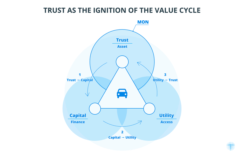 ข้อเสนอนี้มองว่ายานพาหนะไม่ใช่สินทรัพย์ที่แยกออกมา แต่เป็นโหนดในเครือข่ายของผู้ผลิต เจ้าของ ผู้ประกันภัย ผู้ดำเนินการ และหน่วยงานกำกับดูแล MON มีเป้าหมายในการรวมหลักฐานทางกฎหมาย เทคนิค และเศรษฐกิจเข้ากับตัวตนดิจิทัลที่ตรวจสอบได้ซึ่งเชื่อมโยงกับยานพาหนะแต่ละคันผ่านโทเค็นที่ไม่สามารถเปลี่ยนแปลงได้ (NFTs)