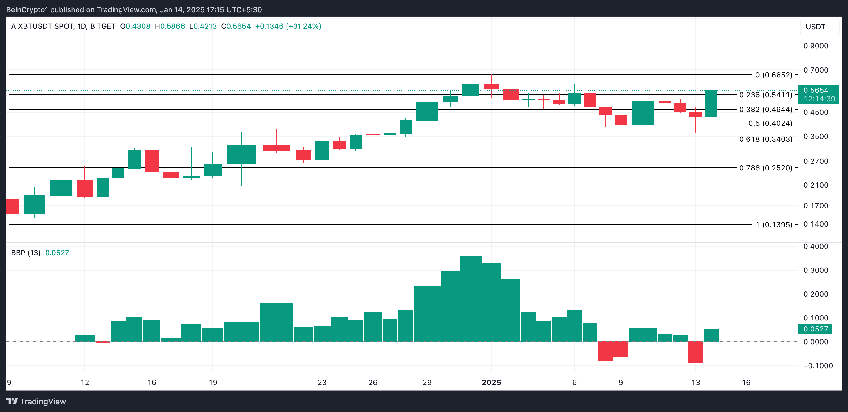ราคาของ AIXBT อาจพุ่งขึ้นไปถึงระดับสูงสุดตลอดกาลที่ 0.66 USD หากแนวโน้มขาขึ้นนี้ยังคงอยู่ ในทางกลับกัน หากแรงกดดันขาลงแข็งแกร่งขึ้น ราคาของมันจะลดลงไปที่ 0.46 USD