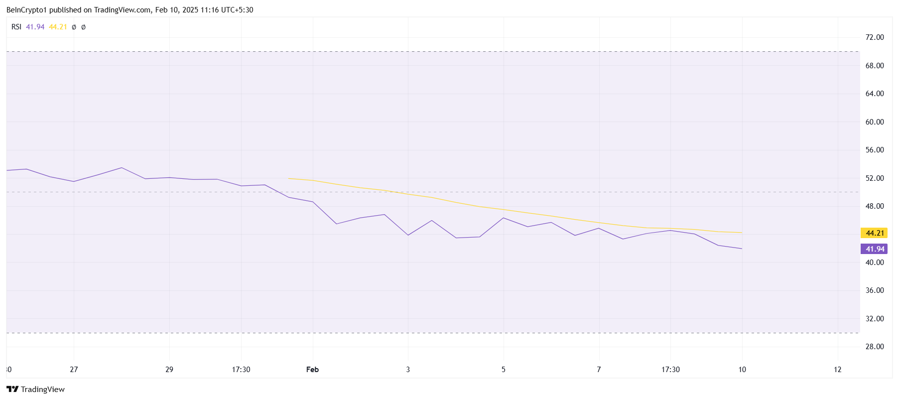 ตัวชี้วัดทางเทคนิคสะท้อนถึงแรงผลักดันที่อ่อนแอลงใน การเคลื่อนไหวของราคา TRUMP ดัชนีความแข็งแกร่งสัมพัทธ์ (RSI) ยังคงต่ำกว่าระดับกลาง 50.0 ตั้งแต่ต้นเดือนกุมภาพันธ์ บ่งบอกถึงแรงกดดันขาลงอย่างต่อเนื่อง RSI ที่ลึกลงบ่งชี้ถึงกิจกรรมการขายที่เพิ่มขึ้นโดยไม่มีสัญญาณบรรเทาในทันที