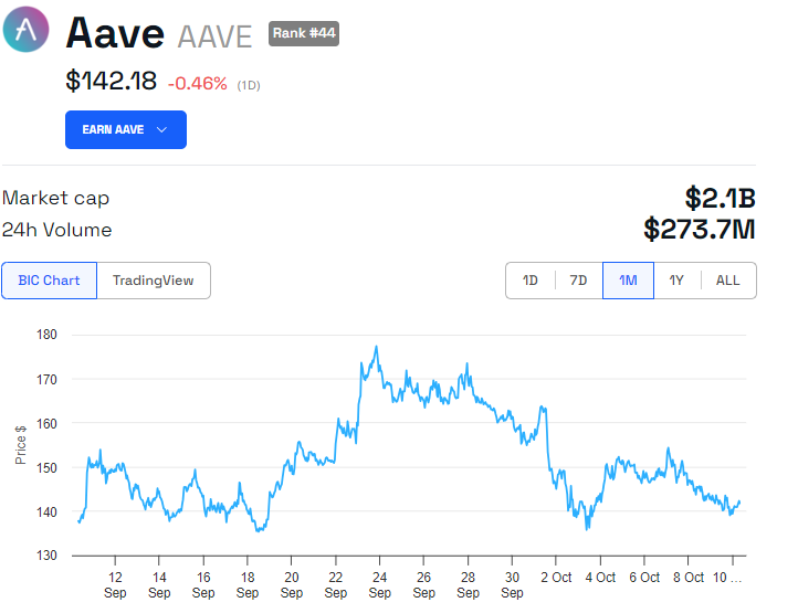 อย่างไรก็ตาม ชุมชน Aave ยังไม่ได้แสดงความหวังเกี่ยวกับการบูรณาการนี้ ซึ่งเห็นได้ชัดเจนจากการที่โทเค็น AAVE ลดลง 0.46% ตาม ตลาดโดยรวมที่ชะลอตัว ข้อมูลจาก BeInCrypto แสดงว่ามันมีราคาอยู่ที่ 142.18 ดอลลาร์ ณ เวลานี้