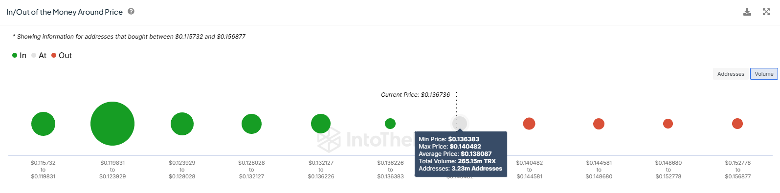 Sponsoredจากตัวบ่งชี้ Global In/Out of the Money (GIOM) นักลงทุน Tron ซื้อ TRX มากกว่า 336 ล้านในช่วงนี้ อุปทานมีมูลค่ารวมกันมากกว่า 45 ล้านดอลลาร์ และจะทํากําไรได้เมื่อถึงระดับสูงสุดของปีจนถึงปัจจุบัน