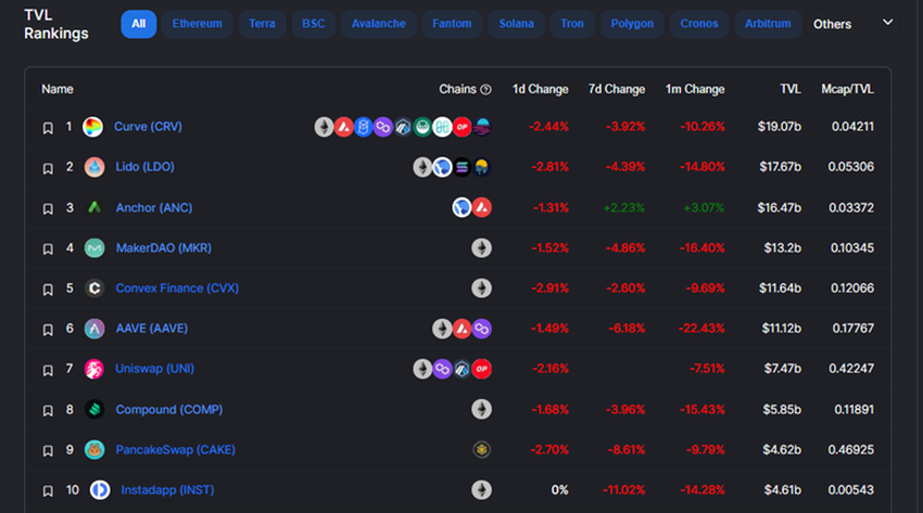 Convex Finance (CVX) Uniswap (UNI) PancakeSwap (CAKE) และ Instadapp (INST) ต่างก็ยืนยันว่าค่า TVL มีการลดลดเช่นเดียวกัน โดยขาดทุนไป 660 ล้านดอลลาร์ 170 ล้านดอลลาร์ 230 ล้านดอลลาร์ และ 770 ล้านดอลลาร์ ตามลำดับ