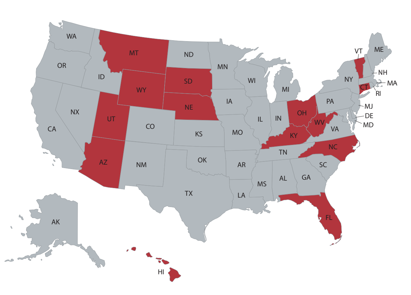 ในจำนวนนั้น 11 รัฐเป็นเฉพาะอุตสาหกรรมและครอบคลุมภาคอื่น ๆ เช่น ปัญญาประดิษฐ์ อสังหาริมทรัพย์ ประกันภัย การดูแลเด็ก การดูแลสุขภาพ และการศึกษา