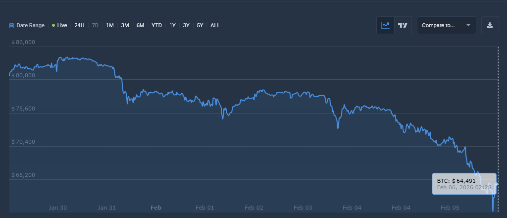 แม้หุ้นจะปรับตัวสูงขึ้น แต่ตลาดคริปโตกลับเคลื่อนไหวสวนทาง ราคาบิตคอยน์ร่วงลงต่ำกว่า 65,000 USD ถือเป็นระดับต่ำสุดในรอบประมาณหนึ่งปี และต่อเนื่องจากแนวโน้มขาลงที่ส่งผลกดดันต่อสินทรัพย์ดิจิทัลอย่างกว้างขวาง