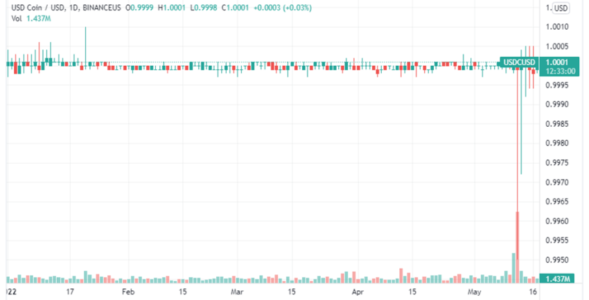 USDC เป็นหนึ่งใน stablecoins ที่ถูกใช้งานมากที่สุดในปัจจุบัน มีปริมาณการซื้อขายเฉลี่ย 3 พันล้านดอลลาร์ต่อวันตลอดเดือนพฤษภาคม ผลลัพธ์นี้ช่วยบรรเทาความผิดพลาดที่เกิดขึ้นกับตลาดคริปโตในช่วงสุดสัปดาห์ ตั้งแต่วันที่ 13 ถึง 15 พฤษภาคม 2022
