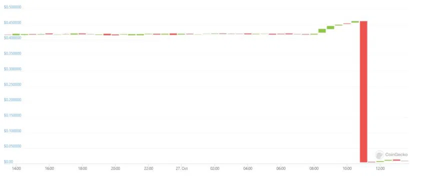 โทเค็นดั้งเดิมของโปรเจกต์ UVT มีมูลค่าลดลงหลังจากการถูกแฮก โทเค็นมีราคาซื้อขายอยู่ที่ 0.46 ดอลลาร์ ก่อนที่มันจะร่วงลงมากกว่า 99% มาอยู่ที่ 0.05 ดอลลาร์