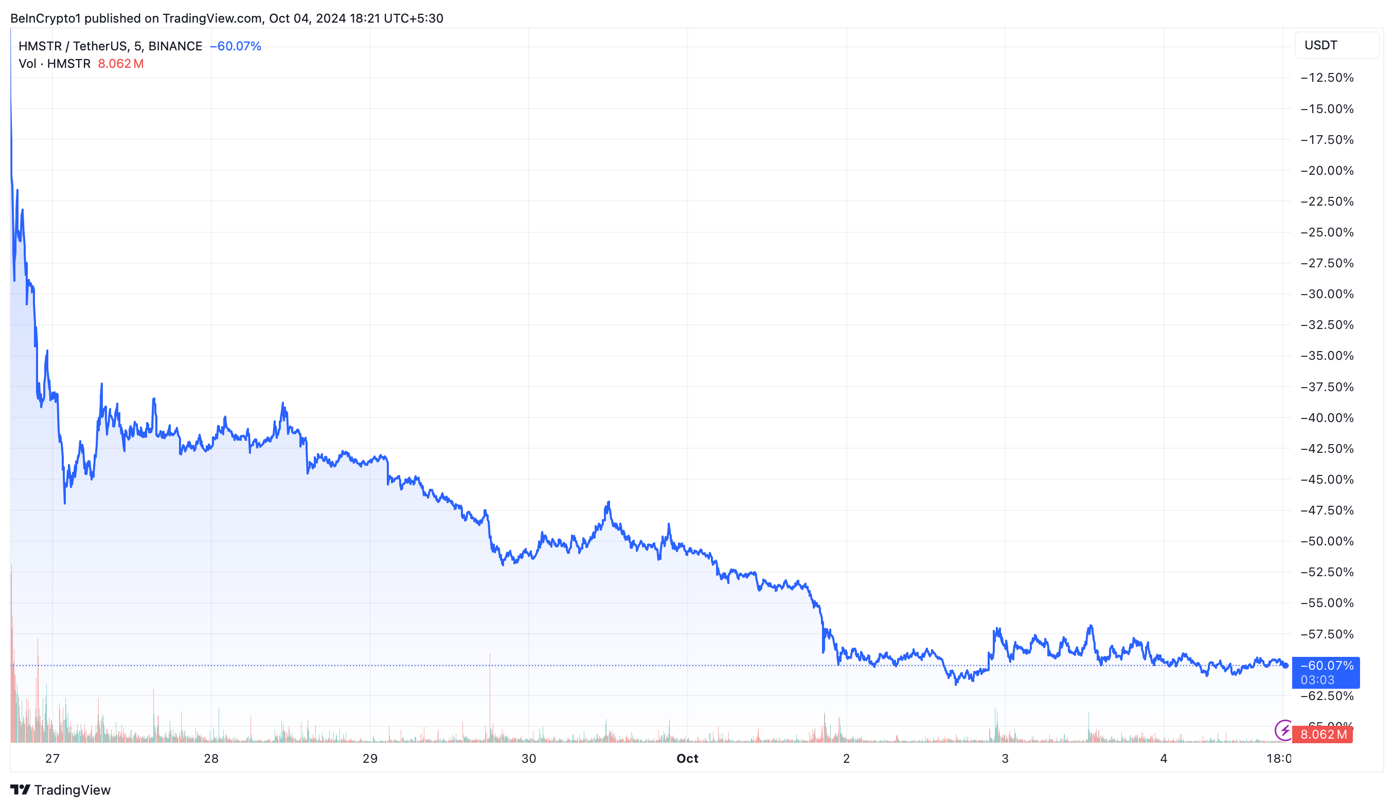 ผลลัพธ์ที่ตามมาคือมูลค่าของเหรียญ HMSTR ลดลงอย่างรวดเร็วหลังจากเปิดตัว โดยราคาลดลงมากกว่า 60% การลดลงนี้เป็นการกระทบอย่างหนักต่อความเชื่อมั่นและผลลัพธ์ทางการเงินของนักลงทุน