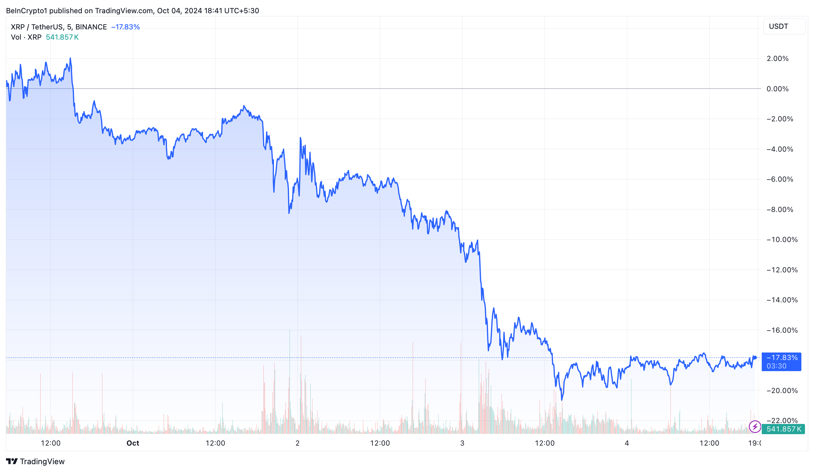 เหตุการณ์นี้ได้กระตุ้นตลาด ส่งผลต่อราคาของ XRP. ผลกระทบทำให้ราคาของ XRP ต่อสู้อย่างยากลำบากในสัปดาห์นี้. ตั้งแต่วันจันทร์ ราคาของ XRP ได้ลดลงมากกว่า 17%.