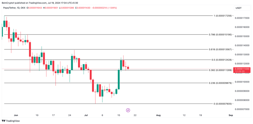 ราคาของโทเค็นธีมกบ Pepe (PEPE) เพิ่มขึ้นกว่า 35% ในช่วงสัปดาห์ที่ผ่านมา ในขณะที่เขียนนี้ เหรียญมีมซื้อขายที่ 0.000011 ดอลลาร์
