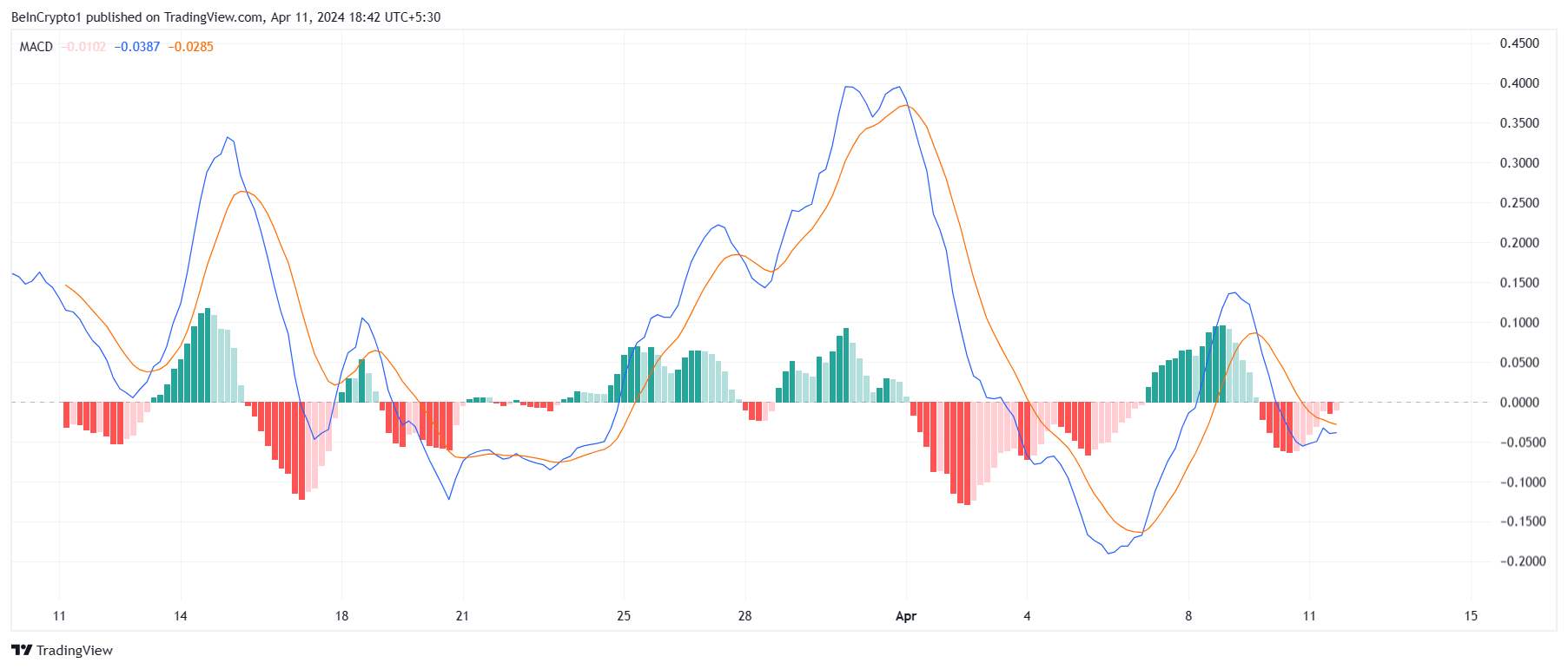 ยิ่งไปกว่านั้น Moving Average Convergence Divergence (MACD) ก็ใกล้ที่จะเกิดรูปแบบของการกลับตัวขาขึ้นเช่นกัน MACD เป็นตัวชี้วัดโมเมนตัมตามแนวโน้มที่แสดงถึงความสัมพันธ์ระหว่างค่าเฉลี่ยเคลื่อนที่ของราคาสินทรัพย์ 2 เส้น ช่วยระบุสัญญาณซื้อและขายที่อาจจะเกิดขึ้นโดยอิงจากสัญญาณ Crossover (การตัดกันของเส้นค่าเฉลี่ยซึ่งจะบ่งบอกถึงสัญญาขาขึ้นหรือขาลง) และ Divergences (สัญญาณความขัดแย้งระหว่างราคาและตัวชี้วัดซึ่งจะบ่งบอกถึงการกลับตัวของแนวโน้ม)