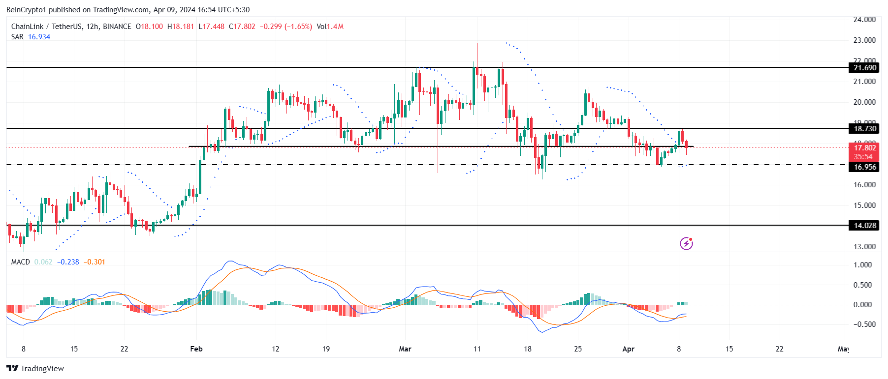 ราคาของเหรียญซื้อขายที่ $17.80 กําลังทดสอบแนวรับในท้องถิ่นที่ $17.85 ซึ่งการเด้งออกซึ่งจะผลักดัน altcoin ให้อยู่เหนือแนวต้าน $18.73 เมื่ออุปทานดังกล่าวมีกําไร LINK จะมีอัพไซด์เพิ่มเติม