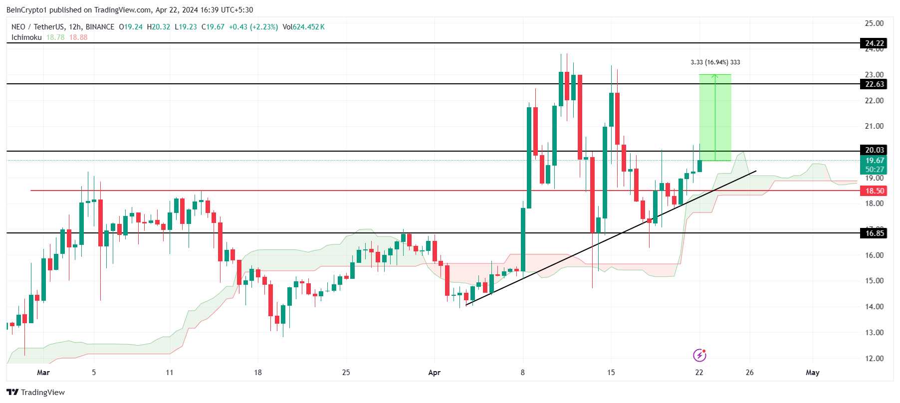 แม้จะมีการปรับฐานและลดลง แต่ ราคาของ Neo ยังคงอยู่ในแนวโน้มขาขึ้น และด้วยสัญญาณขาขึ้นจากตลาดและนักลงทุน แนวโน้มขาขึ้นนี้จะดําเนินต่อไป ผลลัพธ์ที่เป็นไปได้คือ NEO จะทะลุแนวต้านที่ 20 ดอลลาร์