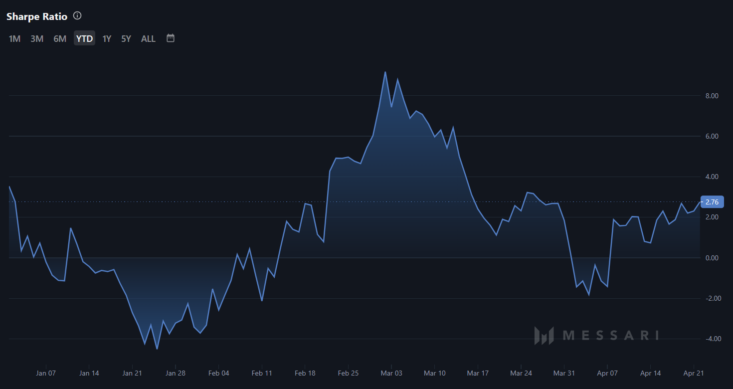 ประการที่สอง สกุลเงินดิจิทัลยังสามารถดึงดูดนักลงทุนรายใหม่เข้าสู่เครือข่ายได้อีกด้วย นี่เป็นเพราะอัตราส่วนชาร์ปอยู่ที่ระดับสูงสุดรายเดือนในขณะนี้ Sharpe Ratio ประเมินว่าการลงทุนทํางานได้ดีเพียงใดเมื่อเทียบกับระดับความเสี่ยงโดยการเปรียบเทียบผลตอบแทนเฉลี่ยกับความผันผวน