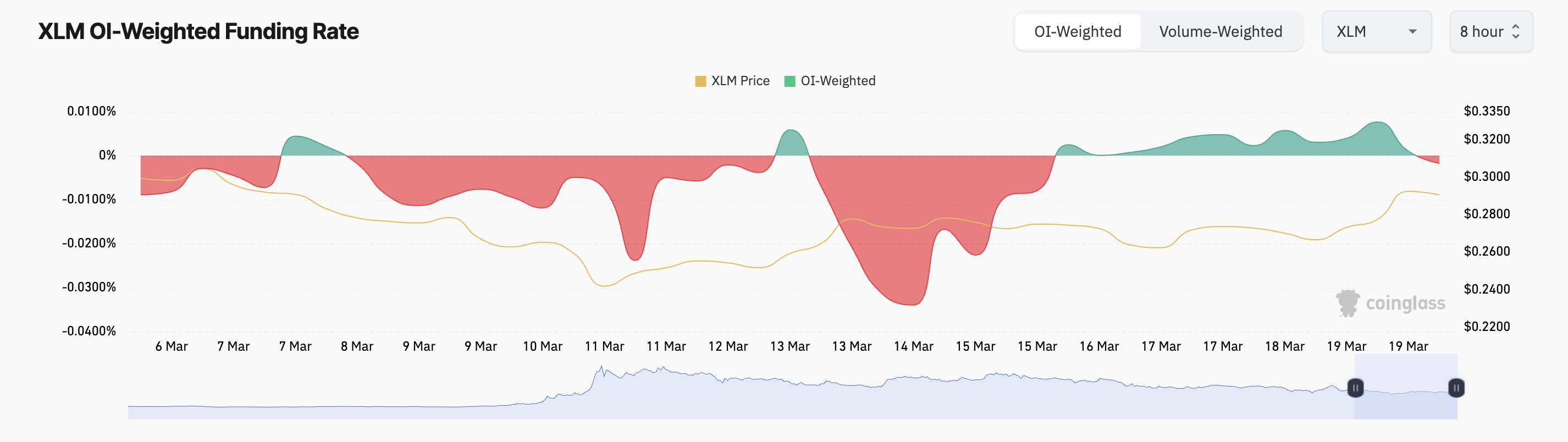 นอกจากนี้ อัตราการระดมทุนของ XLM ได้เปลี่ยนเป็นลบเป็นครั้งแรกในหกวัน ซึ่งเน้นถึงอคติขาลงที่เพิ่มขึ้น ต่อ altcoin ขณะนี้ตัวเลขอยู่ที่ -0.0018%