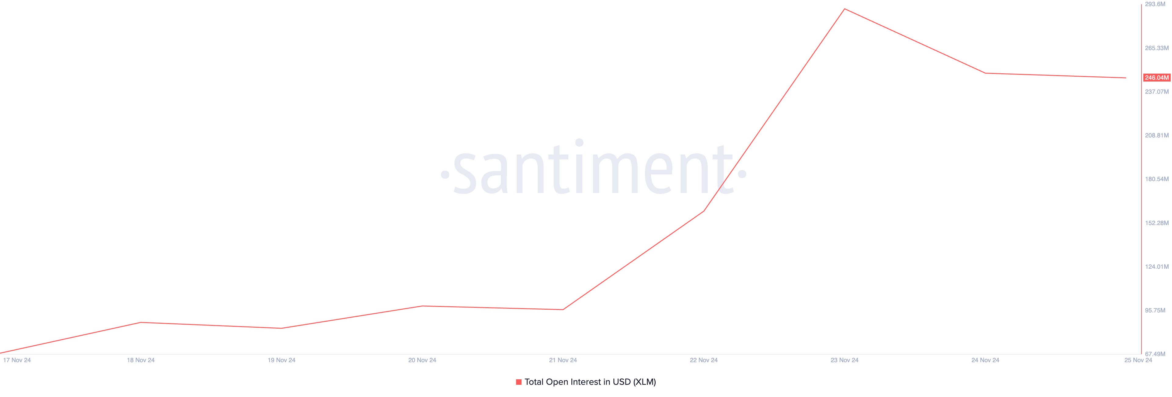 ความสนใจเปิดที่เพิ่มขึ้นของ XLM บ่งบอกถึงกิจกรรมตลาดที่เพิ่มขึ้นและยืนยันความมั่นใจของนักลงทุน ในวันเสาร์ ความสนใจเปิดของโทเค็นนี้เพิ่มขึ้นถึงจุดสูงสุดตลอดกาลที่ 291 ล้าน USD