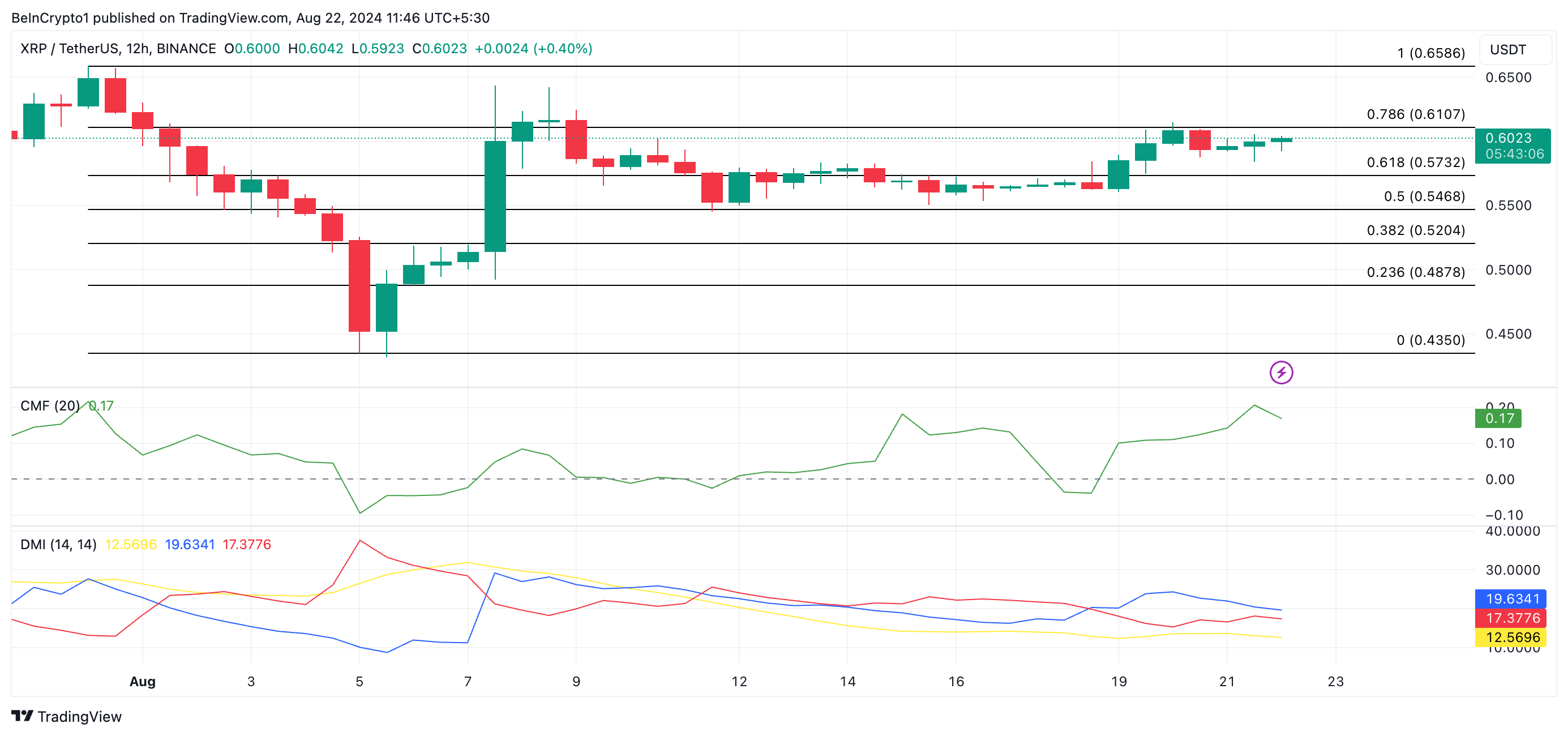 XRP มีมูลค่าเพิ่มขึ้น 5% ในช่วงสัปดาห์ที่ผ่านมา โดยตัวบ่งชี้ทางเทคนิคบ่งชี้ถึงศักยภาพในการเพิ่มขึ้นต่อไป การทบทวนกราฟ 12 ชั่วโมงแสดงให้เห็นว่า altcoin อยู่ในตําแหน่งที่จะขยายโมเมนตัมเชิงบวกนี้