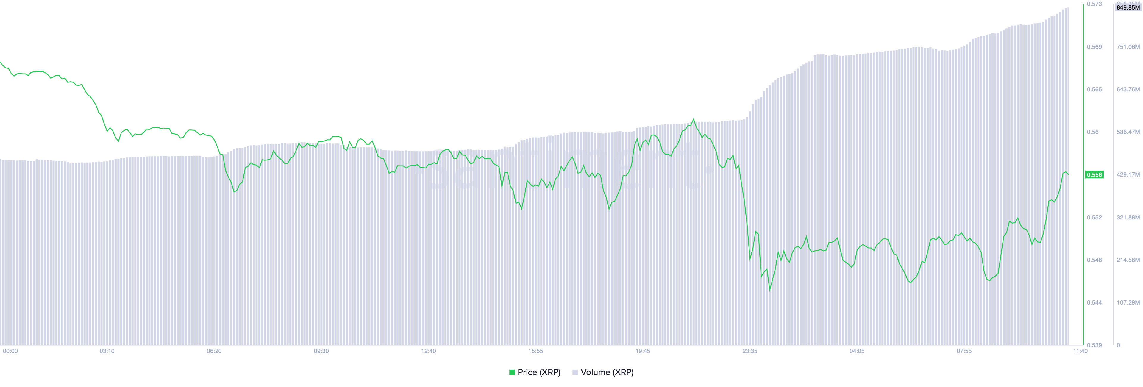 XRP ที่กำลังซื้อขายอยู่ที่ 0.54 USD ได้ลดลง 1% ในช่วง 24 ชั่วโมงที่ผ่านมา อย่างไรก็ตาม การเพิ่มขึ้นของปริมาณการซื้อขาย 78% ในช่วงเวลานี้บ่งชี้ถึงความผันผวนของตลาดที่อาจเกิดขึ้นหรือความท้าทายที่กำลังจะมาถึง