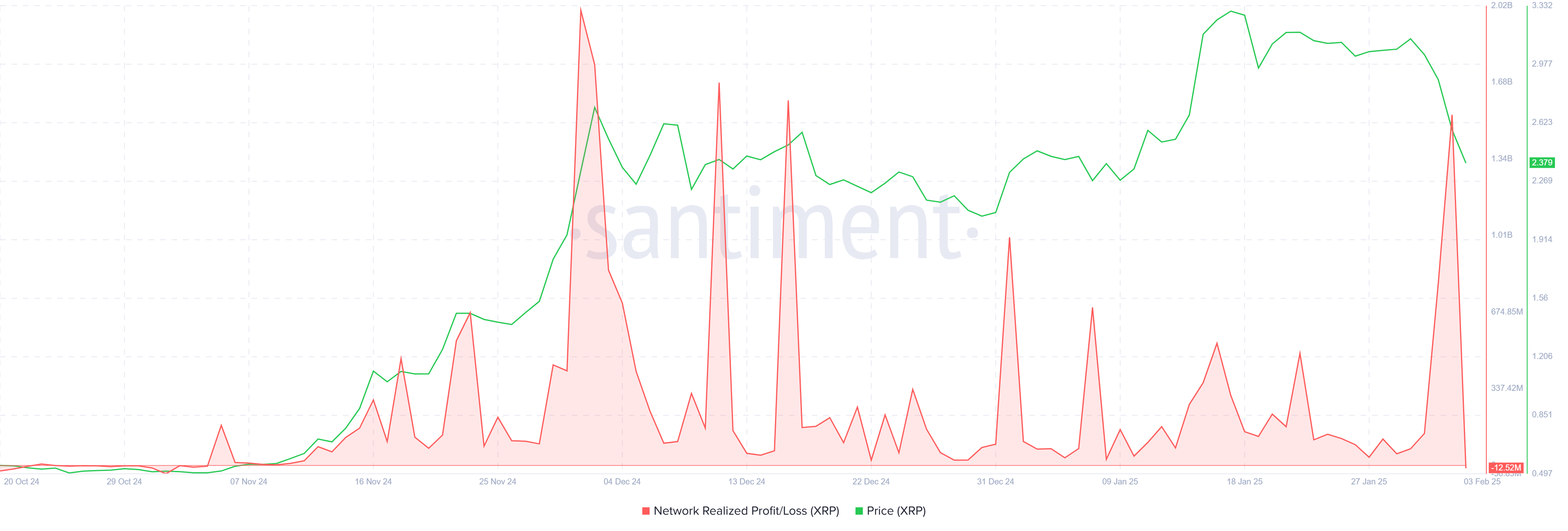 กำไรที่รับรู้จากผู้ถือ XRP พุ่งขึ้นถึง 1.5 พันล้าน USD เมื่อการขายตื่นตระหนกทวีความรุนแรงขึ้น นักลงทุนย้ายไปเพื่อรักษากำไรหลังจากการลดลงของราคาอย่างรวดเร็ว กลัวการสูญเสียเพิ่มเติมหาก XRP ไม่สามารถฟื้นตัวได้ เหตุการณ์การรับรู้กำไรขนาดใหญ่นี้ยิ่งทำให้แรงกดดันขาลงต่อ XRP เพิ่มขึ้น เสริมความไม่แน่นอนเกี่ยวกับแนวโน้มราคาระยะใกล้
