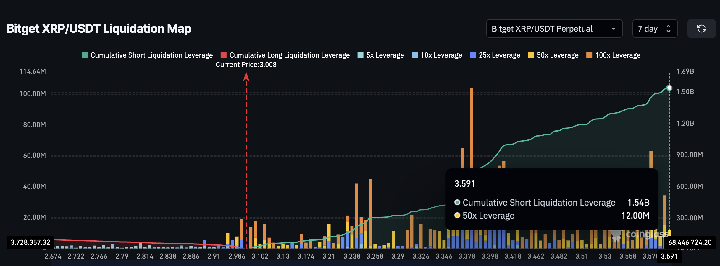 แต่ยังมีสิ่งหนึ่งที่ต้องจับตามอง: กำแพงขนาดใหญ่ของระดับการชำระบัญชีระยะสั้นที่กำลังก่อตัวขึ้นเหนือ 3.59 USD หาก XRP เริ่มฟื้นตัว และดันขึ้นสูง ตำแหน่งระยะสั้นเหล่านั้นอาจถูกบีบต่อไป ทำให้เกิดการเคลื่อนไหวขึ้น