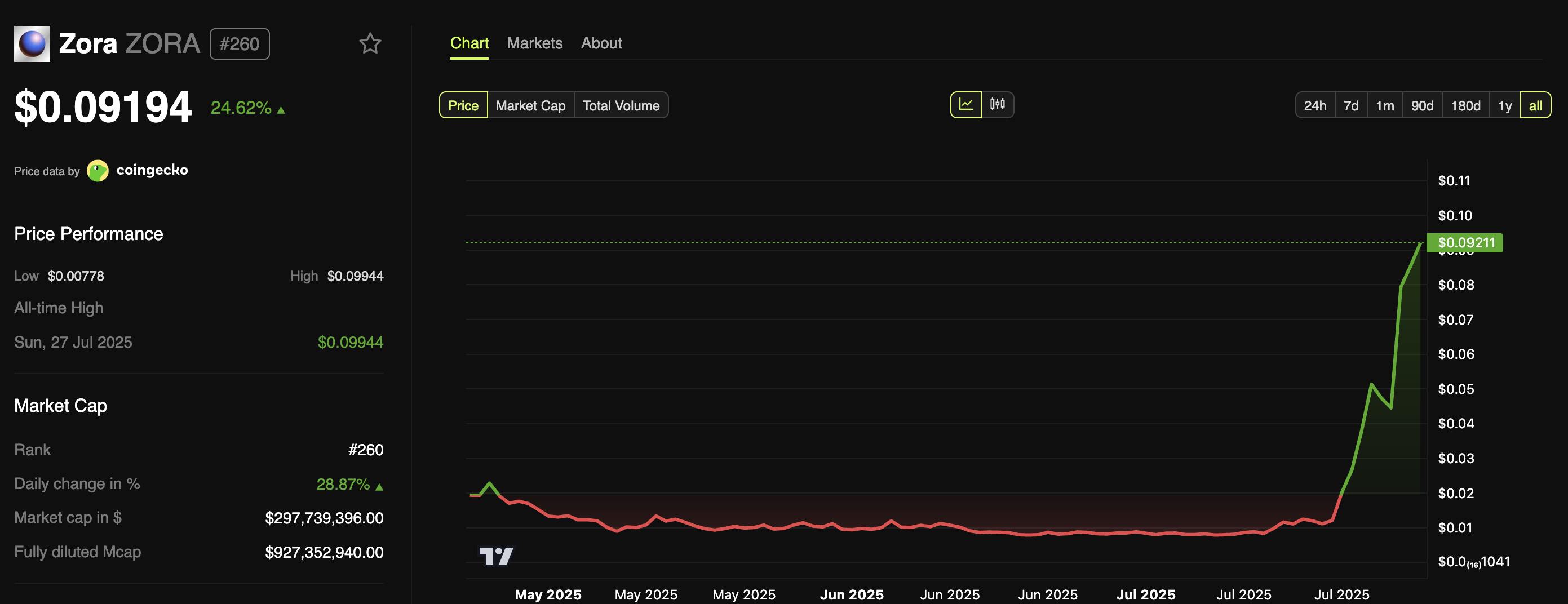 เมื่อวันที่ 25 กรกฎาคม Binance Futures จดทะเบียน ZORAUSDT Perpetual Contract ด้วยเลเวอเรจ 50x การเข้าถึงที่เพิ่มขึ้นและการใช้งานได้ช่วยเพิ่มมูลค่าของ altcoin ขึ้น 360% ในสัปดาห์ที่ผ่านมา